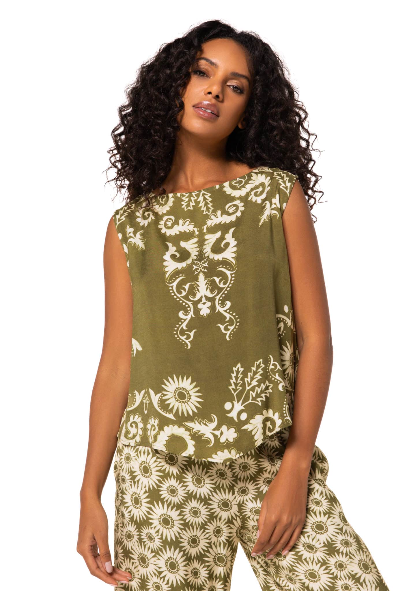 Haut-viscose imprimé foulard- khaki
